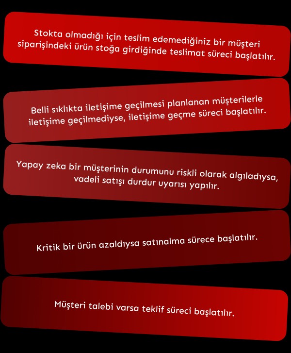 Sipariş, satın alma, satış, stok ve teslimat adımlarınızı uçtan uca analiz ediyoruz.